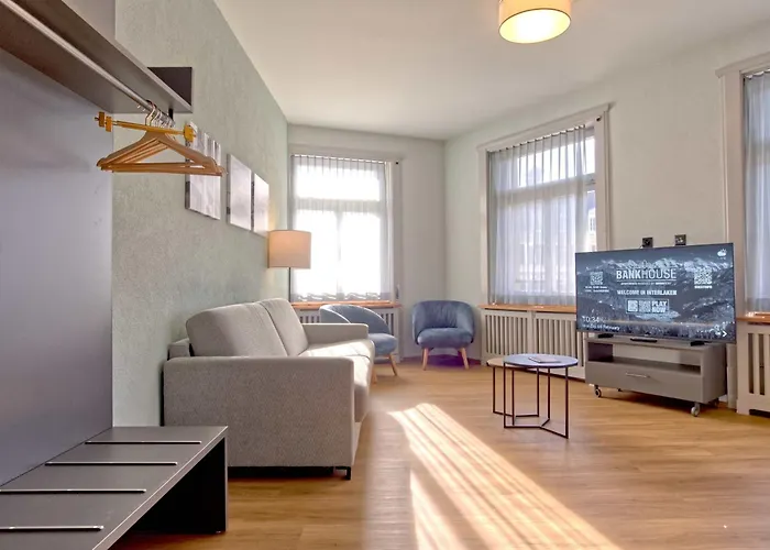 - ❓ما هو موقع Bank House Apartment Xl 304 - Griwa Rent؟تقع Bank House Apartment Xl 304 - Griwa Rent في مركز إنترلاكن، بجوار Hohematte Park.